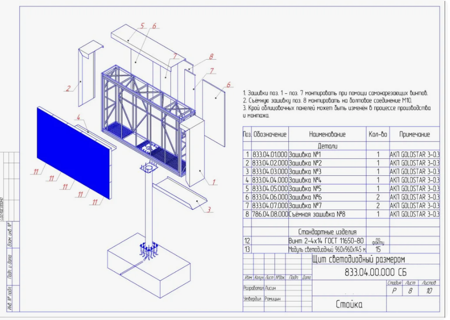 Конструкция | Шаг пикселя, мм. | Размеры, м. | Разрешение, px. | Экран+Каркас | Доставка+Установка | Документация |