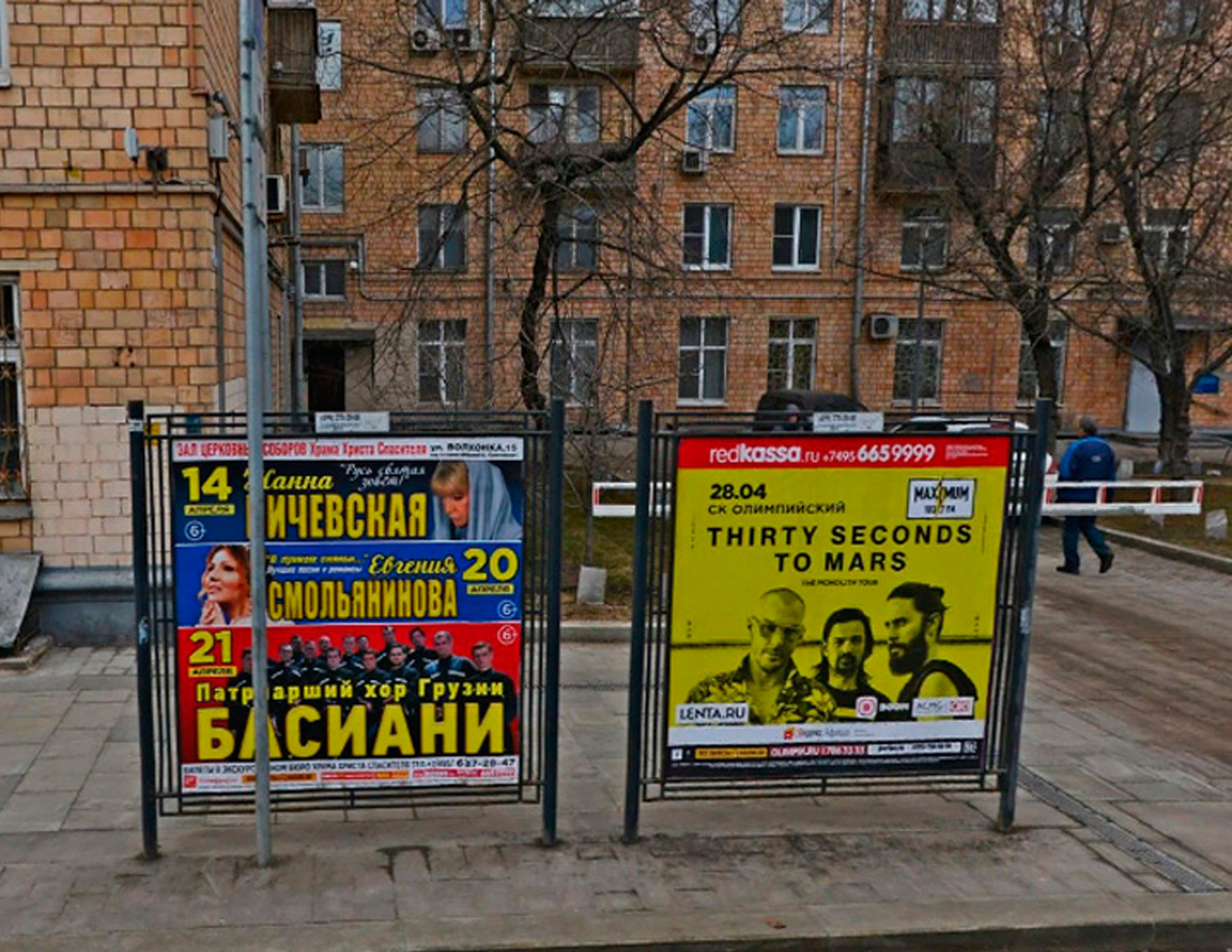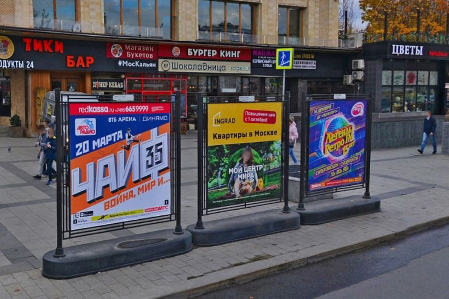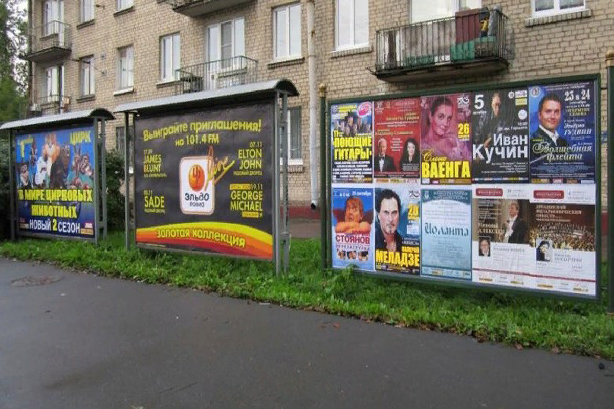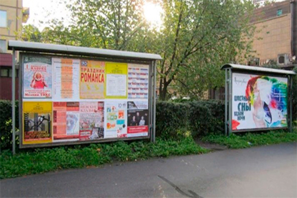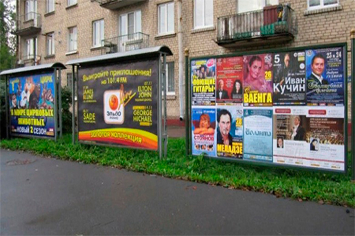 Примеры рекламы на афишных стендах представлены на фото: