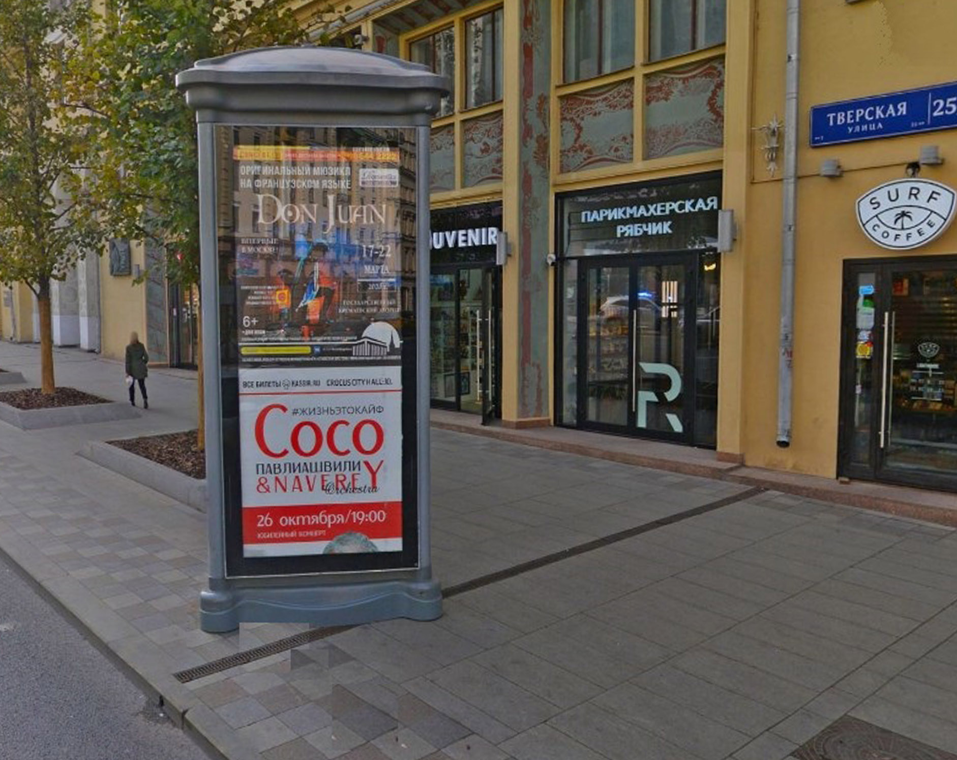 Еще одним не менее важным преимуществом пилларсов является то, что рекламный постер располагается на уровне глаз человека. Данный фактор делает рекламу на пилларах заметной и позволяет проводить рекламную кампанию с высокой степенью эффективности. К тому же небольшие габариты рекламной конструкции позволяют устанавливать пиллары в исторической части города, где всегда много пешеходов и туристов.