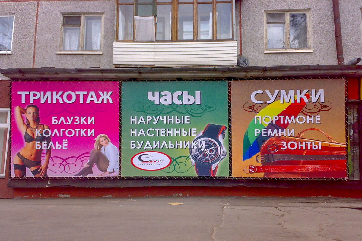 Реклама может быть напечатана на баннерной ткани или на бумаге.