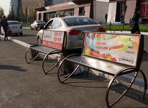 Вместе с тем, возникает вопрос: «Какая конструкция наружной рекламы сочетает в себе все указанные выше плюсы и при этом стоит не дорого?». Можно смело отметить, что к таким конструкциям относятся, в том числе скамейки (лавочки). Скамейки являются теми рекламными конструкциями, которые дают рекламодателю прекрасную возможность при небольшом бюджете охватить большое количество потенциальных клиентов.