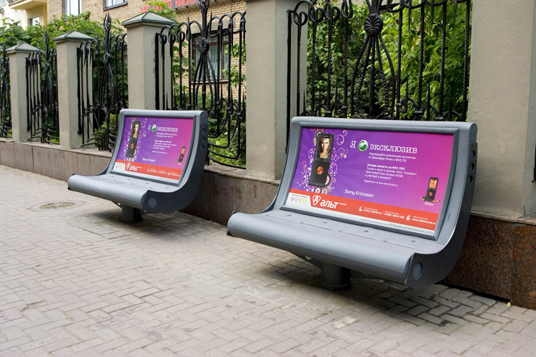 Особое внимание обращайте на конструкции, установленные возле учебных заведений, ресторанов, клубов, больниц, деловых и торговых центров, т.е. в местах скопления людей. Особенно эффективна реклама на скамейке, установленной на перекрестке – такая конструкции наружной рекламы заметнее, на нее больше обращают внимание.