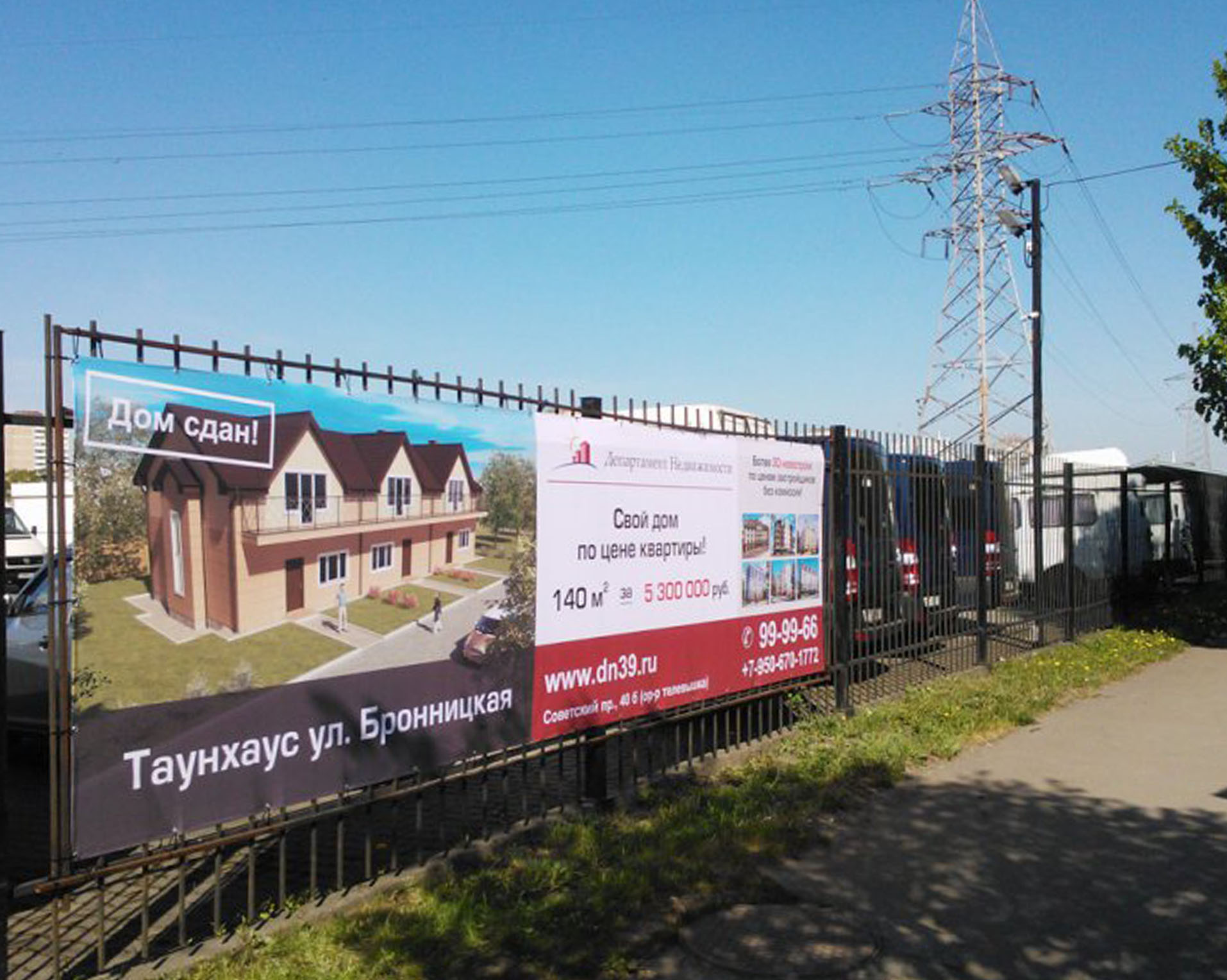 Дополнительно к изложенному необходимо отметить, что благодаря низкой стоимости изготовления баннеров для размещения на заборах реклама зачастую носит массовый характер и охватывает весь город. Низкая цена является главным критерием выбора рекламы на заборах для тех рекламодателей, которые планируют охватить максимальное количество потенциальных клиентов, поскольку, чем больше людей увидят рекламу, тем больше из них приобретут товар или закажут услугу.