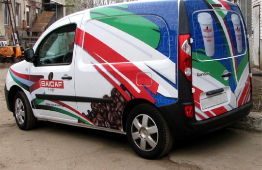 Можно сделать вывод, что при оклейке корпоративных машин нами применяется как виниловая аппликация самоклеящейся пленкой, так и полноцветная печать на самоклеящейся пленке с последующей ламинацией и наклейкой на борта транспортного средства.