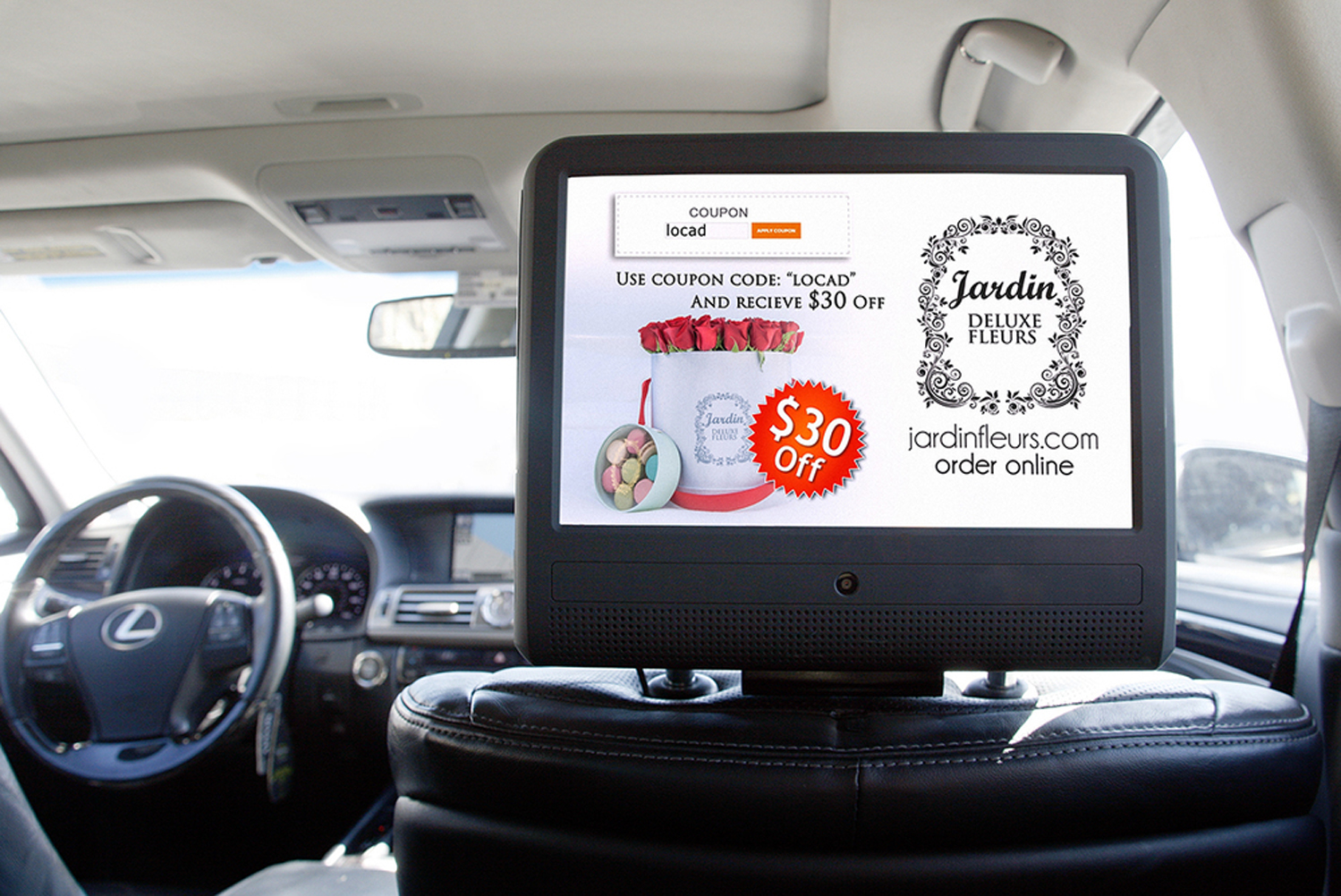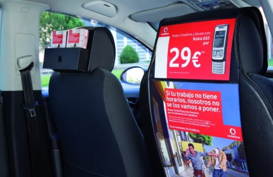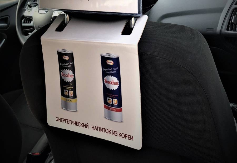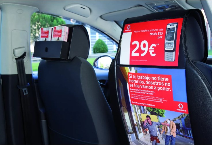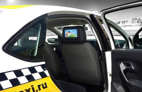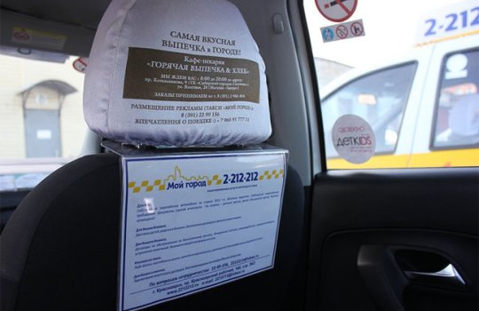 Реклама на подголовниках в такси на фото выше