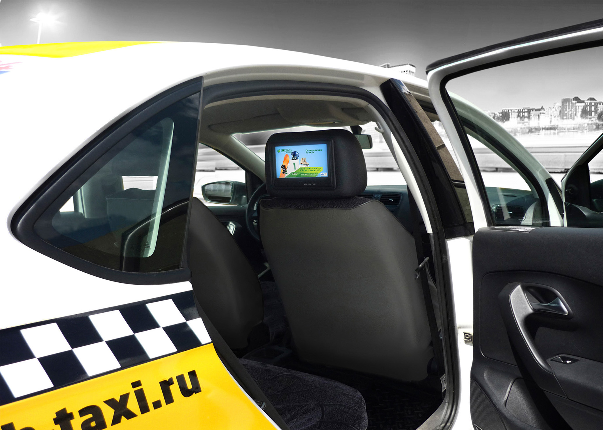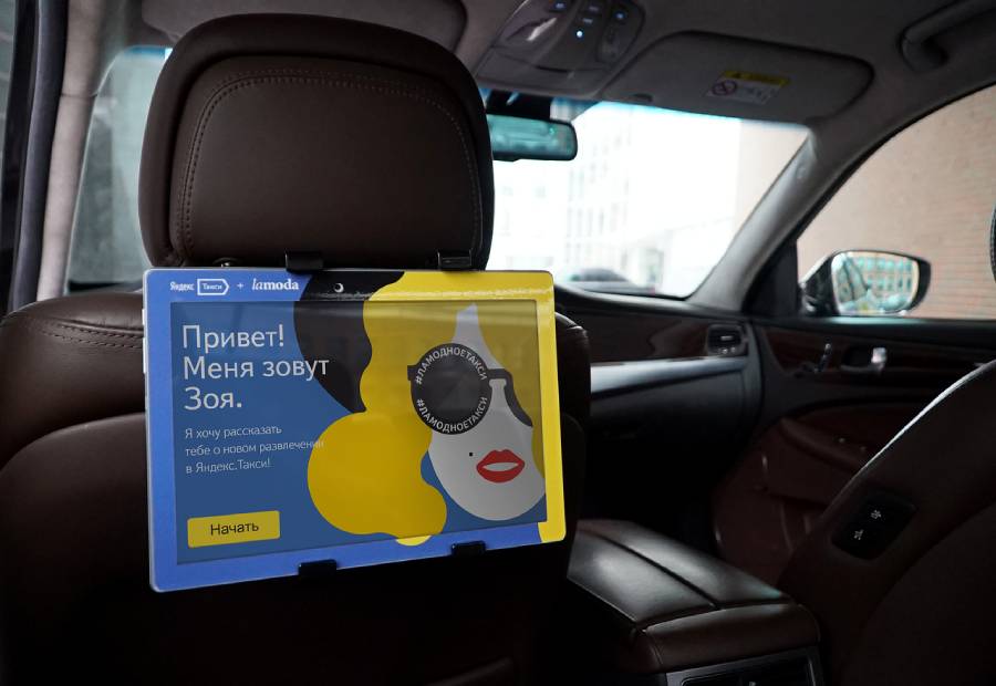 Реклама на мониторах в такси на фото выше