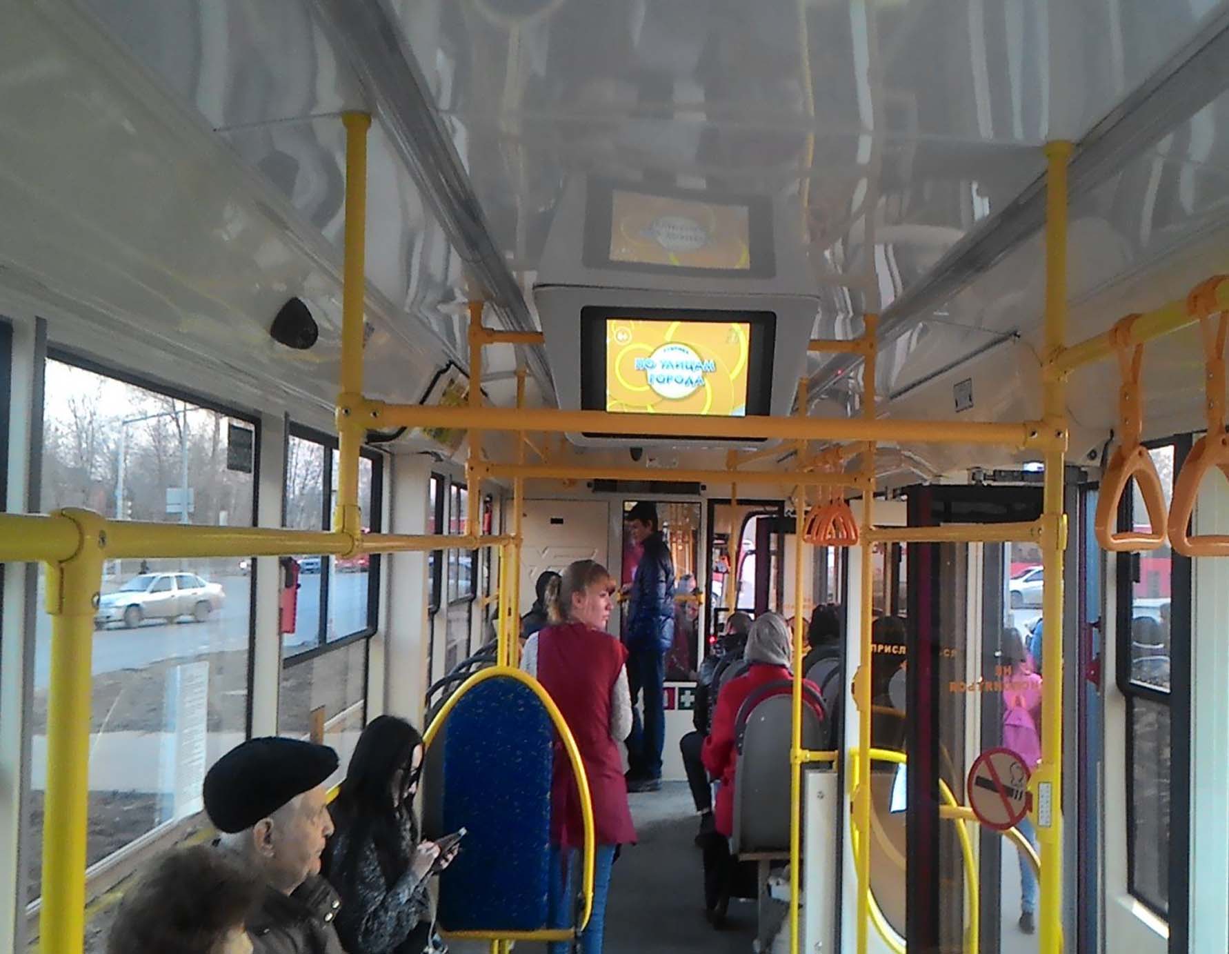Напомним, что рекламу в трамваях в Чебоксарах можно разместить как в виде стикера, афиши, бортовой оклейки, так и запустить трансляцию рекламного ролика на установленных в салоне транспортного средства мониторах.