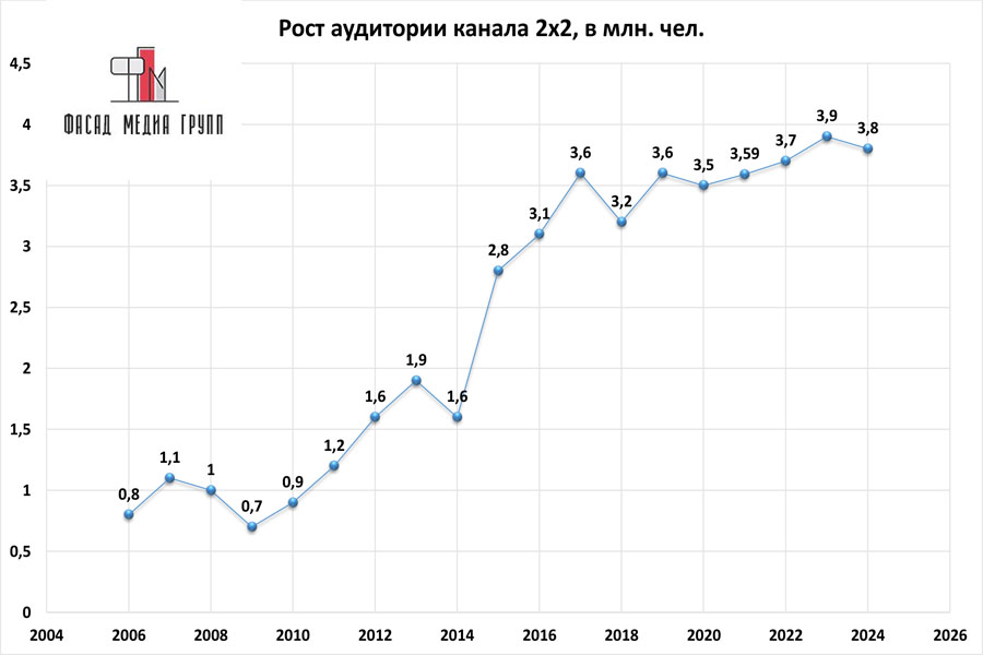 Популярность телеэфира на «2х2» приводит к ежегодному увеличению спроса на рекламное время. Для привлечения клиентов из разных регионов России, увеличения процента продаж, повышения имиджа компании и узнаваемости бренда – размещайте рекламу на «2х2». «2х2» – это проверенный и востребованный канал для размещения рекламы на чебоксарском ТВ. Для размещения рекламы на телевидении обращайтесь в рекламное агентство «Фасад Медиа Групп». Будем рады сотрудничеству.