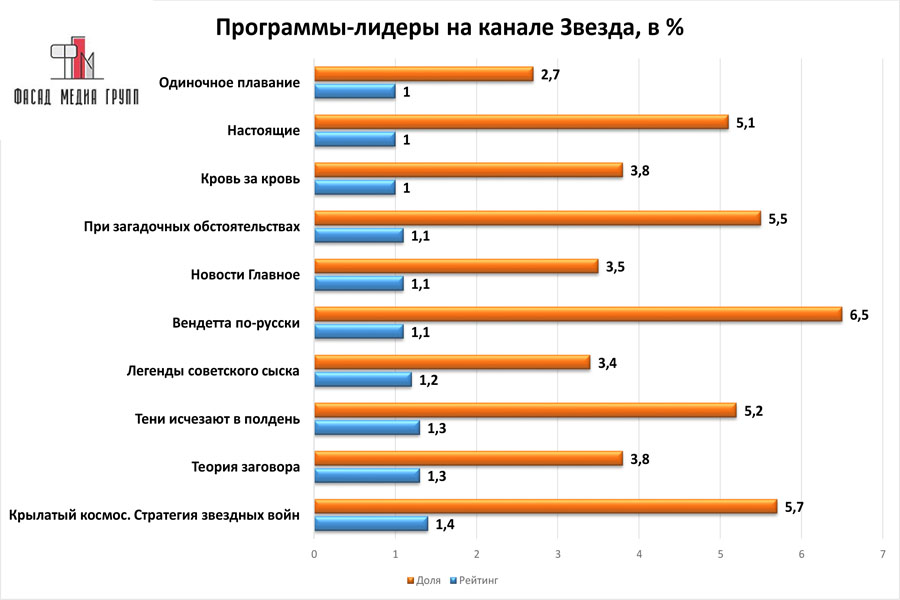 Популярность телеэфира на «ЗВЕЗДЕ» приводит к ежегодному увеличению спроса на рекламное время. Для привлечения клиентов из разных регионов России, увеличения процента продаж, повышения имиджа компании и узнаваемости бренда – размещайте рекламу на «ЗВЕЗДЕ». «ЗВЕЗДА» – это проверенный и востребованный канал для размещения рекламы на чебоксарском ТВ. Для размещения рекламы на телевидении обращайтесь в рекламное агентство «Фасад Медиа Групп». Будем рады сотрудничеству.