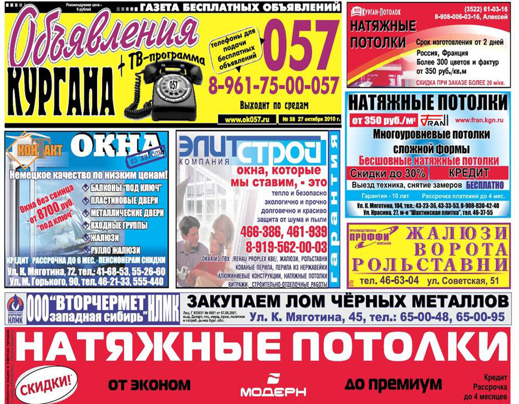 Таким образом, для настройки и размещения рекламы в газетах (печатных СМИ), необходимо обратиться к специалистам нашего рекламного агентства.