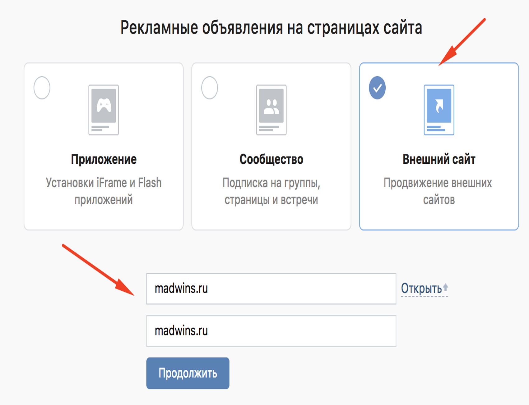 3) Реклама внешних сайтов ВКонтакте. Продвижение внешних сайтов.