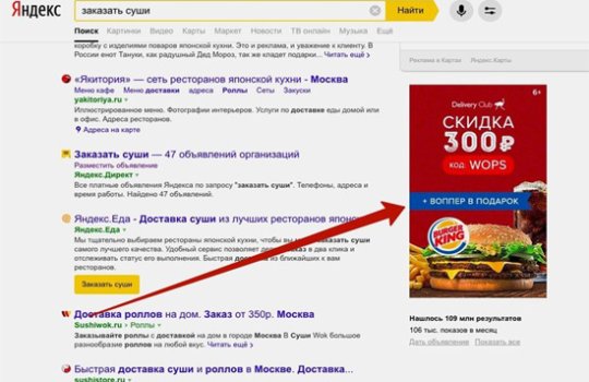 Пример баннера на главной странице в Яндексе представлен ниже: