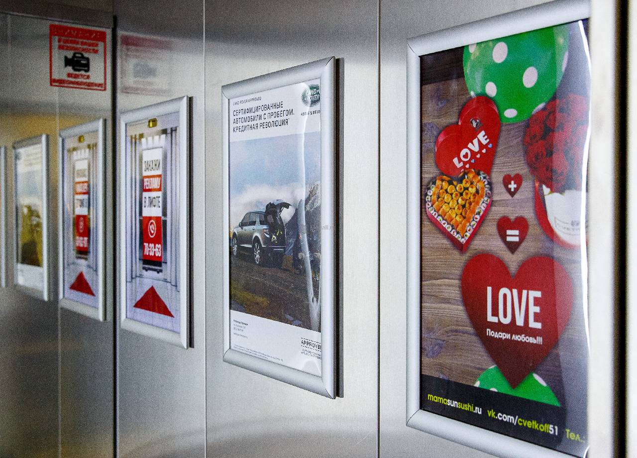 Высокая частота контактов является важным составляющим успеха любой рекламной кампании. Размещая рекламу в помещениях и зданиях, рекламодатель обеспечивает массовый охват целевой аудитории и значительно повышает вероятность привлечь новых клиентов и увеличить процент продаж.