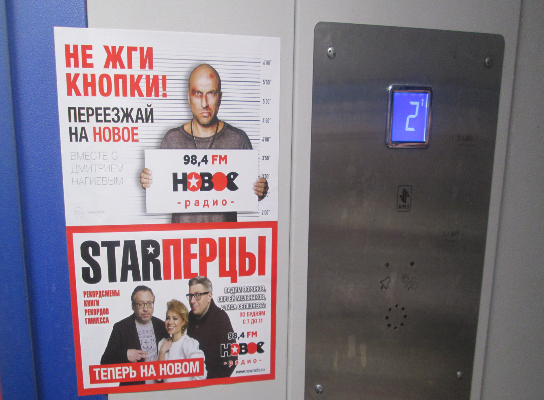 Примеры наших работ при размещении рекламы в лифтах представлены ниже: