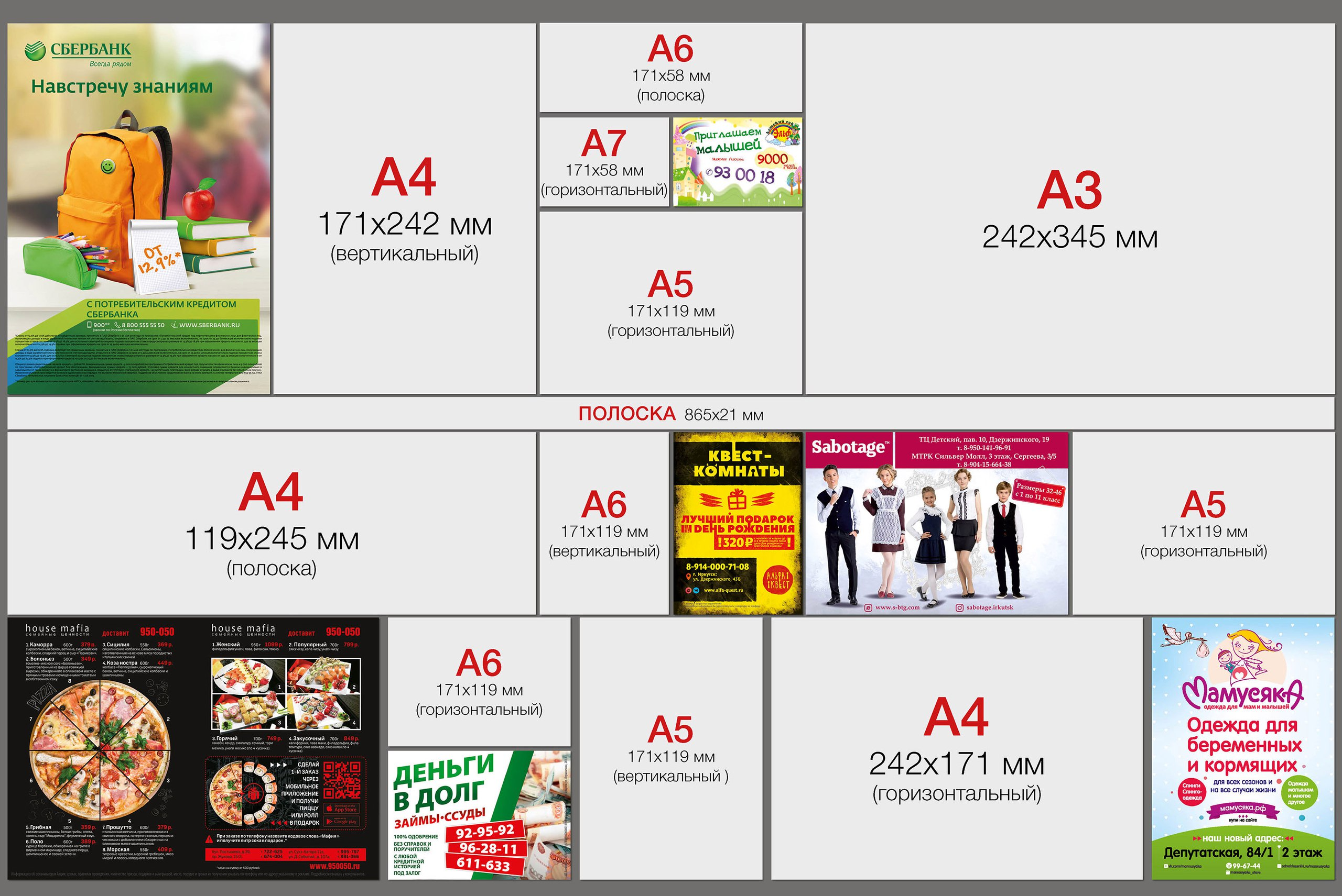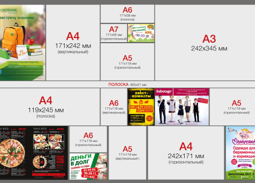 Дополнительно необходимо отметить, что формат рекламы в подъездах в Чебоксарах является одним из основных факторов, влияющих на стоимость. Так, рекламные листовки бывают различных форматов: А1, А2, А3, А4, А5, А6. Чем меньше формат, тем ниже цена. Вариативность форматов рекламы позволяет рекламодателям даже с небольшим бюджетом размещать рекламу в подъездах и сообщать населению о продаваемых товарах и оказываемых услугах.