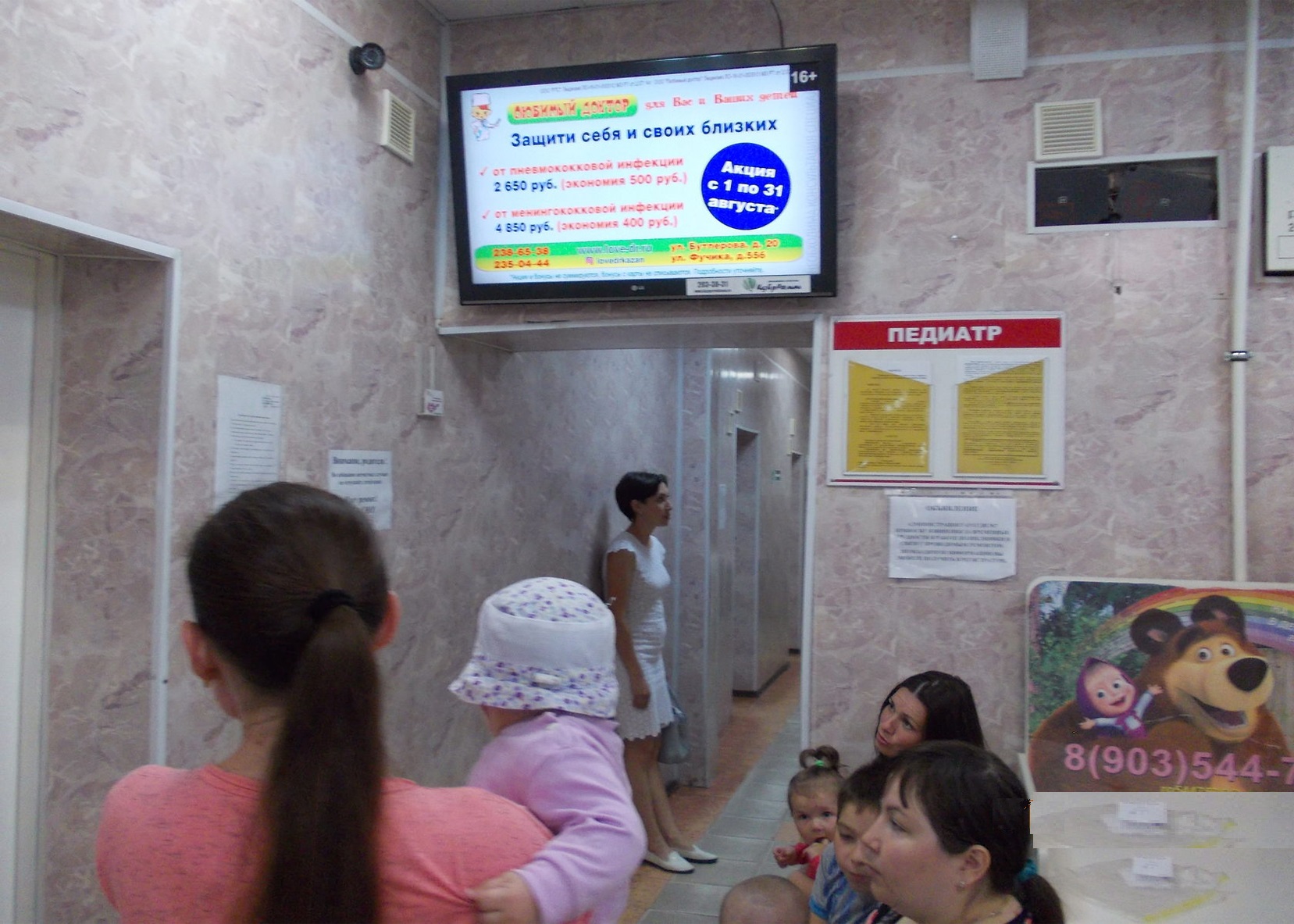 Можно коротко сказать, что реклама в поликлиниках ориентирована на всех горожан и гостей города без исключения.