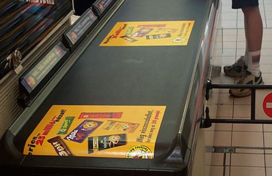 Стикеры являются одни из самых популярных форматов при размещении рекламы в супермаркетах. Многие клиенты нашей компании выбирают дынный рекламный формат при планировании рекламной кампании в супермаркетах. Одной из отличительных особенностей стикеров является их долговечность. Достигается это благодаря тому, что рекламный стикер печатается на специальной самоклеящейся пленке.
