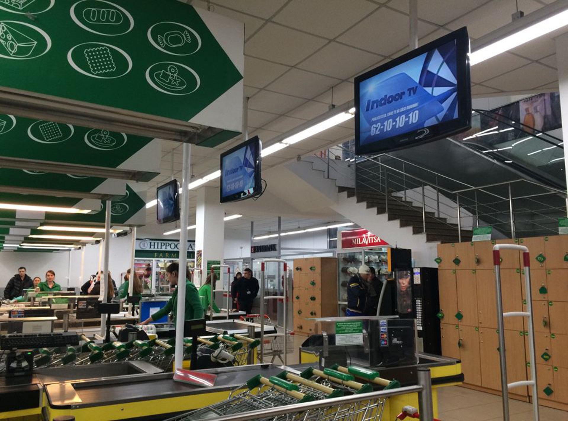 Примеры наших работ при размещении рекламы в супермаркетах представлены ниже: