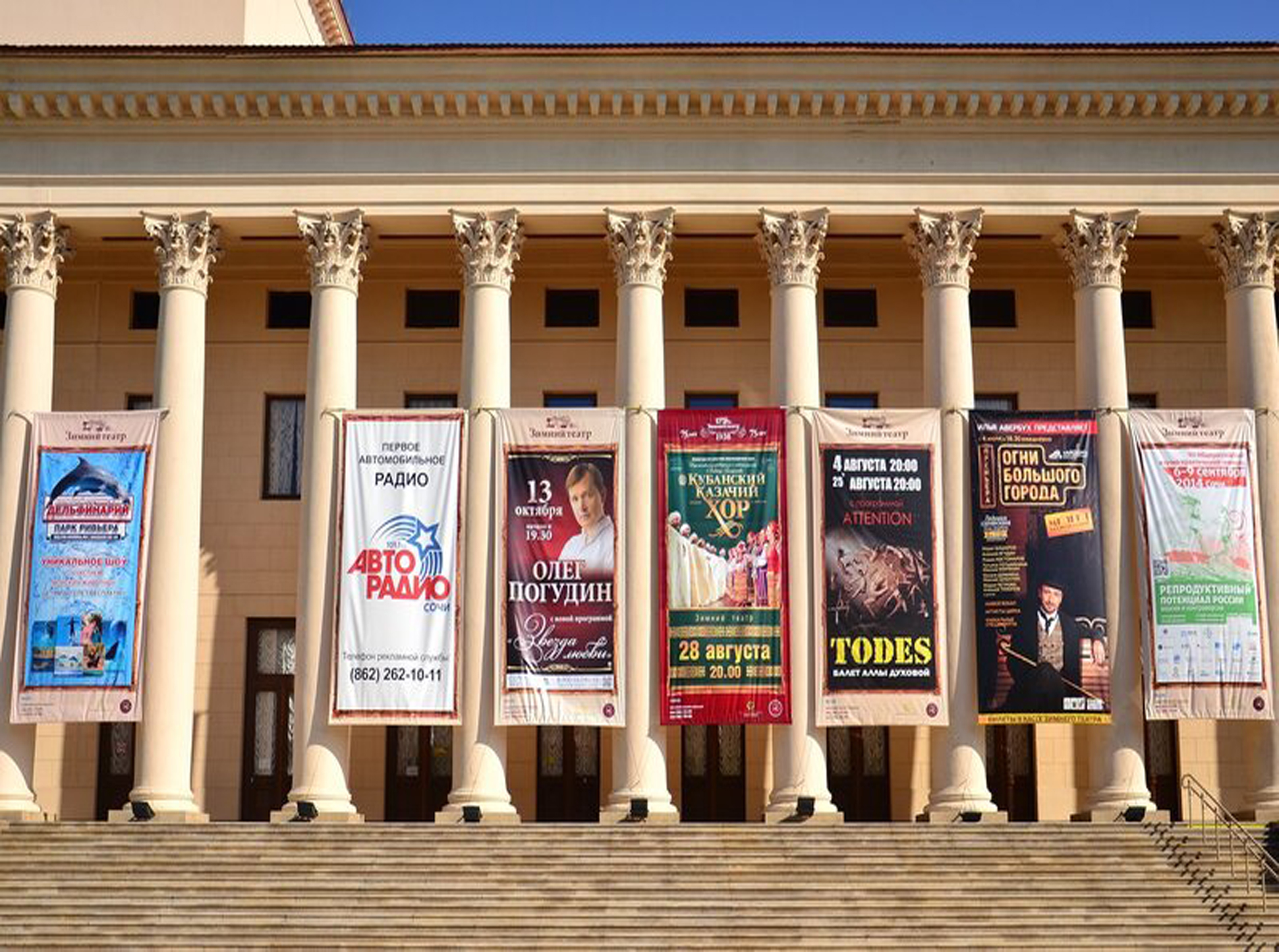 Баннер для размещения рекламы в театрах мы печатаем на виниле или на экофлексе.