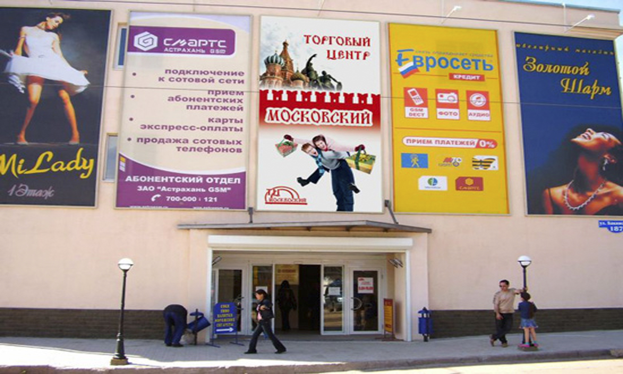Пример рекламного баннера на здании торгового центра: