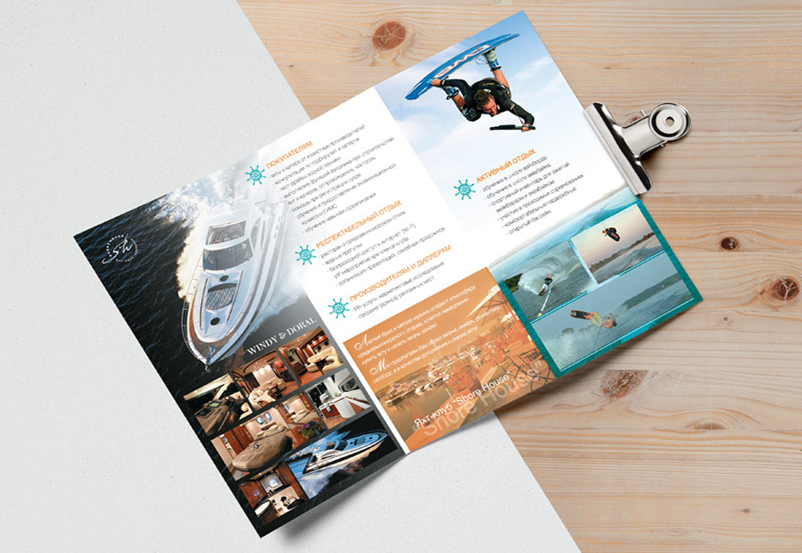 Пример печатных рекламных материалов в яхт-клубе: